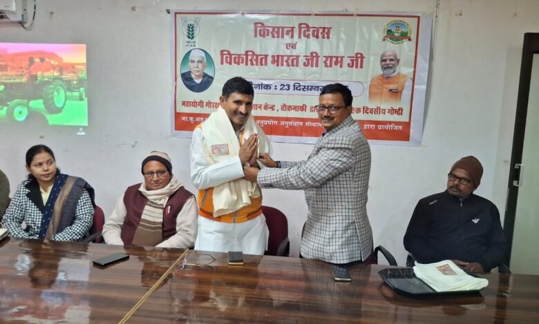 गोरखपुर महायोगी गोरखनाथ कृषि विज्ञान केंद्र, चौकमाफी (पीपीगंज) में मंगलवार को भारत रत्न पूर्व प्रधानमंत्री चौधरी चरण सिंह की जयंती के अवसर पर राष्ट्रीय किसान दिवस एवं विकसित भारत-जी राम जी (ग्रामीण रोजगार एवं आजीविका मिशन) कार्यक्रम का सफल आयोजन किया गया।कार्यक्रम की अध्यक्षता केंद्र के वरिष्ठ वैज्ञानिक एवं अध्यक्ष डॉ. आर.के. सिंह ने की। उन्होंने मुख्य अतिथि पूर्वांचल विकास बोर्ड के सदस्य विजय शंकर यादव एवं विशिष्ट अतिथि केशव प्रसाद तिवारी का स्वागत किया। मुख्य अतिथि यादव ने उपस्थित किसानों का धन्यवाद ज्ञापित करते हुए कहा कि विकसित भारत गारंटी का रोजगार और आजीविका मिशन अधिनियम (जी राम जी) ग्रामीण अर्थव्यवस्था को मजबूत करने की दिशा में एक महत्वपूर्ण कदम है।मंच संचालन करते हुए केंद्र के उद्यान वैज्ञानिक डॉ. अजीत कुमार श्रीवास्तव ने अधिनियम के चार मुख्य स्तंभों—बुनियादी ढांचे का निर्माण, जल संबंधित कार्य, आजीविका सृजन एवं खराब मौसम में काम की कमी को दूर करने—की विस्तार से जानकारी दी। डॉ. आर.के. सिंह ने कहा कि इस अधिनियम का मुख्य उद्देश्य हर गरीब को गरिमामय रोजगार प्रदान करना तथा ग्रामीण इंफ्रास्ट्रक्चर को सुदृढ़ बनाना है।कार्यक्रम के दौरान केंद्र द्वारा छह किसानों—श्रीमती छोहारी देवी, सुभाष, रविंद्र, दुर्गेश, संजय गुप्ता एवं श्रीमती इंदु—को सम्मानित किया गया।इस अवसर पर केंद्र के मृदा विशेषज्ञ डॉ. संदीप प्रकाश उपाध्याय, पशुपालन विशेषज्ञ डॉ. विवेक प्रताप सिंह, गृह विज्ञान विशेषज्ञ डॉ. श्वेता सिंह, विषय वस्तु विशेषज्ञ श्वेता श्रीवास्तव, जितेंद्र सिंह, गौरव सिंह एवं शुभम पांडे सहित अन्य कर्मी उपस्थित रहे।
