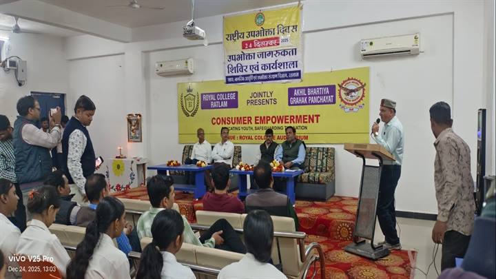 राष्ट्रीय उपभोक्ता दिवस 24 दिसम्बर का आयोजन रॉयल कॉलेज सभागार, सालाखेडी, महू-नीमच रोड, रतलाम में किया गया। इस अवसर पर एक संगोष्ठी एवं प्रदर्शनी का आयोजन किया गया। कार्यक्रम के प्रारम्भ में ग्राहक पंचायत, रतलाम द्वारा रॉयल कॉलेज के विद्यार्थियों के मध्य उपभोक्ता जागरूकता क्लब का गठन किया गया एवं क्लब के सदस्यों को प्रमाण-पत्र वितरित किये गये।