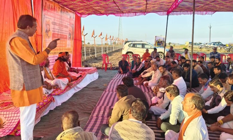 यह बैठक परम पूज्य गुरुदेव गोशरण जी महाराज एवं सभी संतो के सानिध्य में संपन्न हुई, जिसमें आसपास के सभी ग्रामीणजन बड़ी संख्या में उपस्थित रहे। बैठक के दौरान गो चिकित्सालय के निर्माण, कथा आयोजन की रूपरेखा तथा व्यवस्थाओं पर विस्तार से चर्चा की गई। इस अवसर पर मैं भी अपनी पूरी टीम के साथ बैठक में उपस्थित रहा और आयोजन को सफल बनाने हेतु सभी से आग्रह किया । जय श्री राम जय गो माता बैठक में प्रदेश अध्यक्ष ठाकुर शिव प्रताप सिंह चौहान प्रदेशसंगठन मंत्री जितेंद्र सिंह बरखेड़ी मंडल अध्यक्ष रितेश जैन नेपाल सिंह खजूरी दीपिका सिंह डोडिया देवेंद्र शर्मा आदि वरिष्ठ जन एवं ग्रामीण जन उपस्थित रहे