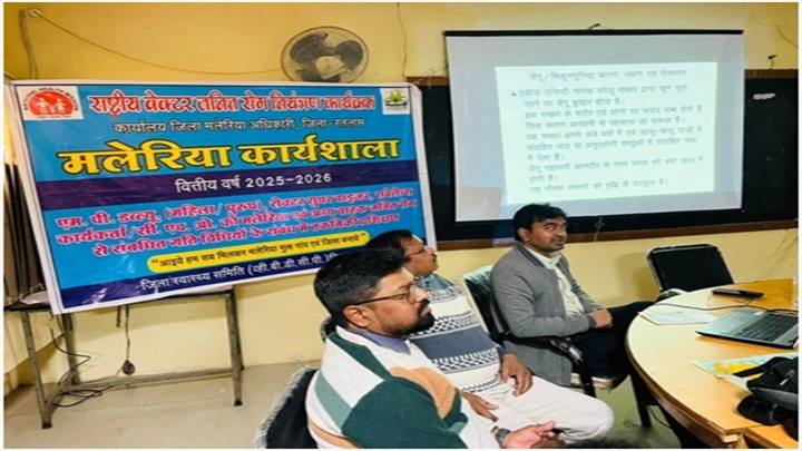 मुख्य चिकित्सा एवं स्वास्थ्य अधिकारी डॉ. संध्या बेलसरें के मार्गदर्शन एवं जिला मलेरिया अधिकारी डॉ. देवेन्द्र कुमार मोर्य, के निर्देशन में मलेरिया विभाग द्वारा आज 27 दिसम्बर को जिले के समस्त विकासखण्ड के एम.पी.डब्लू, सुपरवाइजर, सी.एच.ओ. ए.एन.एम. को वेक्टर जनित रोग नियंत्रण हेतु मलेरिया, डेंगू बीमारी की रोकथाम, जांच उपचार से संबंधित प्रशिक्षण दिया गया। जिला व्ही.बी.डी.सी.पी. सलाहकार श्री प्रमोद कुमार प्रजापति द्वारा पी.पी.टी. प्रेजेंटेशन के माध्यम से मलेरिया के लक्षण, मलेरिया की रोकथाम, मलेरिया की जांच व उपचार ग्राम आरोग्य केन्द्र पर लक्ष्य अनुसार कार्य करना बताया गया। साथ ही सक्रिय रहकर अपने गॉव में आये बुखार रोगियों की निगरानी कर आर.डी.टी. से जांच कर एवं पॉजिटिव आने पर मलेरिया डोज कार्ड अनुसार प्राथमिक उपचार देना सुनिश्चित करें बताया गया तथा गंभीर मलेरिया रोगी पाये जाने पर नजदीकी स्वास्थ्य केन्द्र पर रेफर करना सुनिश्चित करे। जिला मीडिया अधिकारी द्वारा बताया गया कि मलेरिया से बचाव के लिए अनुपयोगी बर्तनों तथा कूलर आदि में जमा पानी सप्ताह में एक बार अवश्य बदलें, जिससे मच्छरों का लार्वा घरों के अन्दर नहीं पनपेगा। घरों के आस-पास जमा पानी हो तो उसकी निकासी की व्यवस्था करें, क्योंकि इसी जमा पानी में मच्छर पनपते है जो मलेरिया, डेंगू, चिकनगुनिया, जैसी बीमारी भी फैलाते है। सहायक मलेरिया अधिकारी श्री एल. एस. मोरें द्वारा फिवर सर्वे, लार्वा सर्वे एवं कन्टेनर सर्वे हेतु जानकारी प्रदान की गई। श्री प्रवीण गामड़ एम.टी.एस. बिलपांक द्वारा आर.डी.टी. कीट से कार्यकर्ताओं को हैंड्स ऑन के माध्यम से जांच करना बताया गया। उक्त प्रशिक्षण में विभाग के श्री मुकेश खागुडा विकासखण्ड सैलाना श्री संदीप कुमार विजयवर्गीय, श्री लोकेश वैष्णव, श्री ओमप्रकाश बावल्चा एवं समस्त मलेरिया विभाग के कर्मचारी उपस्थित थे।