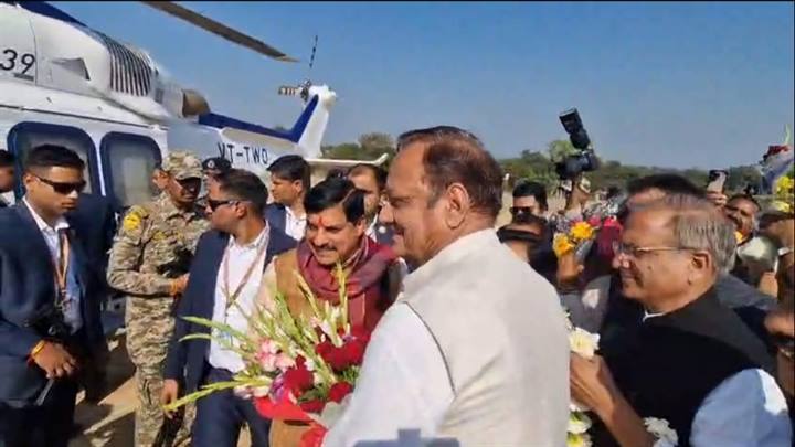 मुख्यमंत्री डॉ यादव का बाराखेड़ा हेलीपैड पर जनप्रतिनिधियों ने स्वागत किया