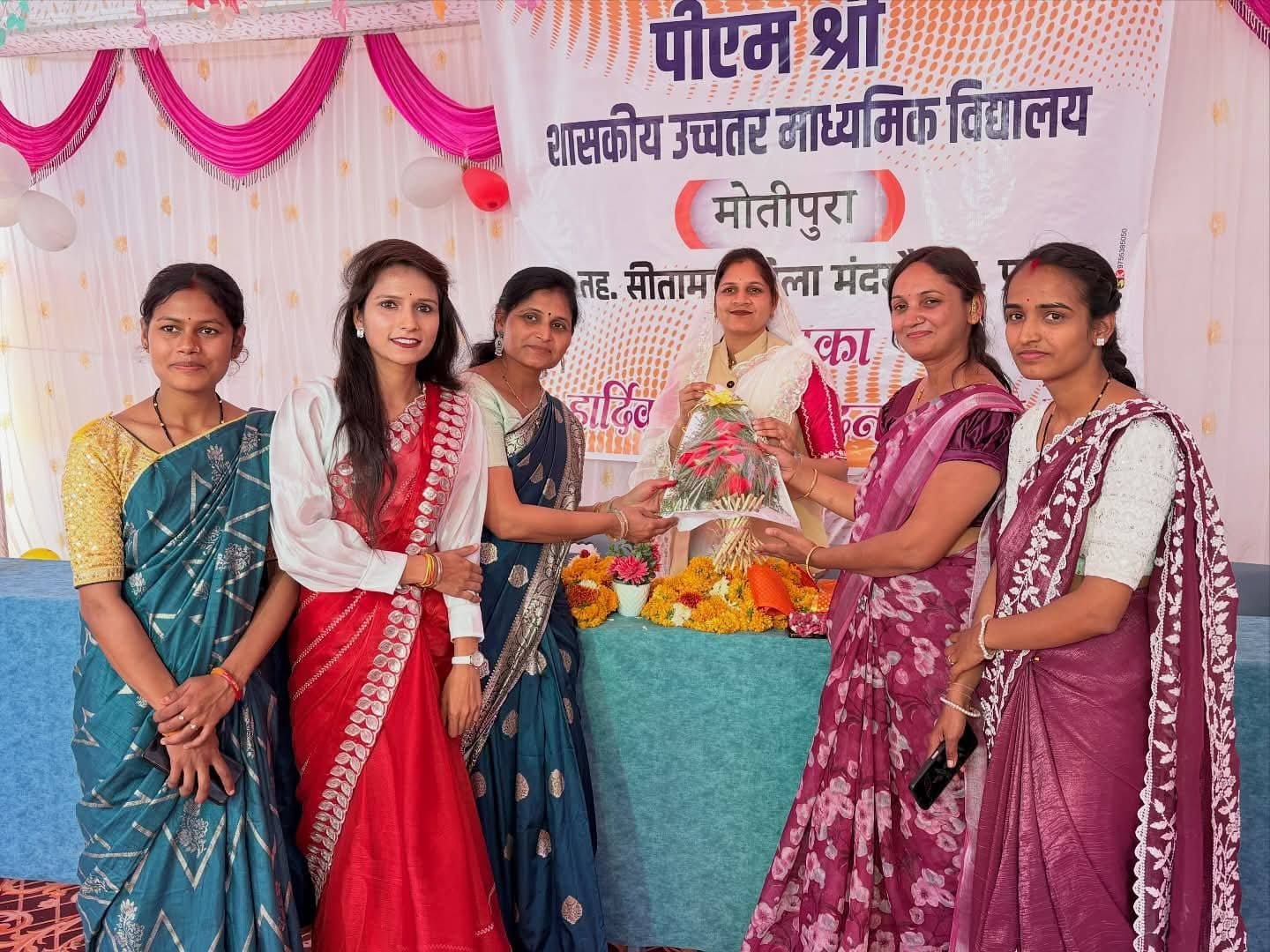 बाजखेड़ी । पीएम श्री शासकीय उच्चतर माध्यमिक विद्यालय, मोतीपुरा में जिला पंचायत अध्यक्ष श्रीमती दुर्गा डॉ विजय पाटीदार के मुख्य अतिथि में सांस्कृतिक कार्यक्रम में का आयोजन किया गया।इस अवसर पर विद्यालय परिवार के छात्र–छात्राओं द्वारा प्रस्तुत रंगारंग एवं प्रेरणादायक सांस्कृतिक प्रस्तुतियों का अवलोकन किया। विद्यार्थियों की प्रतिभा, अनुशासन एवं आत्मविश्वास अत्यंत सराहनीय रहा। कार्यक्रम के माध्यम से हमारी भारतीय संस्कृति, संस्कार एवं रचनात्मकता की सुंदर झलक देखने को मिली।