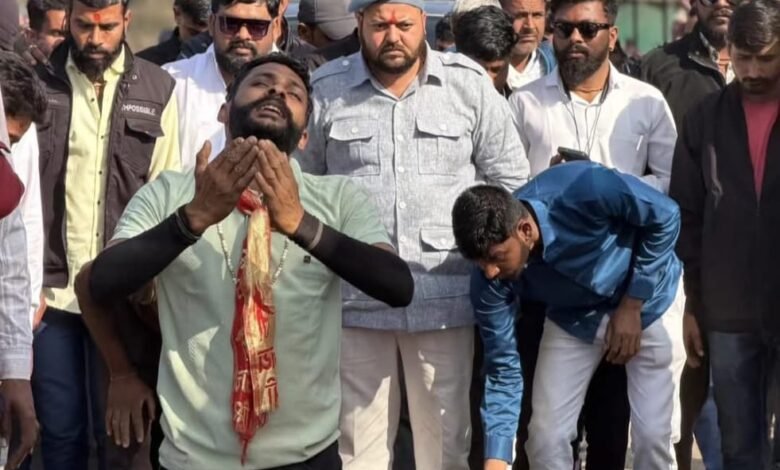 क्रांति न्याय आंदोलन पूर्णतः शांतिपूर्ण सफल होने कि दो युवकों ने श्री होरी हनुमान जी धाम तक लोटन एवं दण्डवत यात्रा कि मन्नत पूरी की