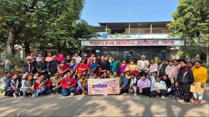 आनंद विभाग रतलाम द्वारा शासकीय कन्या स्नातकोत्तर महाविद्यालय रतलाम की प्राचार्य डॉ मंगलेश्वरी जोशी के मार्गदर्शन में विद्यार्थियों में आनंद की अनुभूति कराने व उनके दैनिक जीवन में सकारात्मक सोच को लाने के लिए अल्पविराम परिचय कार्यशाला का आयोजन किया गया। डॉ जोशी ने कहा कि हम जिंदगी भर आनंद बाहर की वस्तुओं से आनंद प्राप्त करने की कोशिश करते रहते हैं, जबकि जिंदगी का असली आनंद तो हमारे भीतर है।