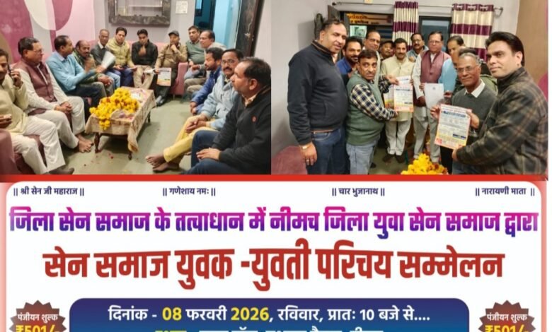 सेन युवक /युवती परिचय सम्मेलन को लेकर नीमच जिला सेन समाज की टीम मंदसौर जिले में समाज जनो से जनसंपर्क