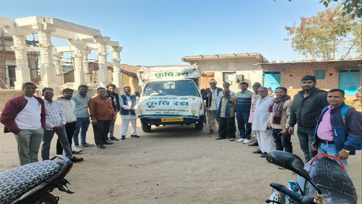 कृषि रथ द्वारा भ्रमण कर ग्राम पंचायत राजापुरा, कुशलगढ़ एवं पिपलिया जोधा में किसानों को कृषि की उन्नत तकनीकों की जानकारी दी गई