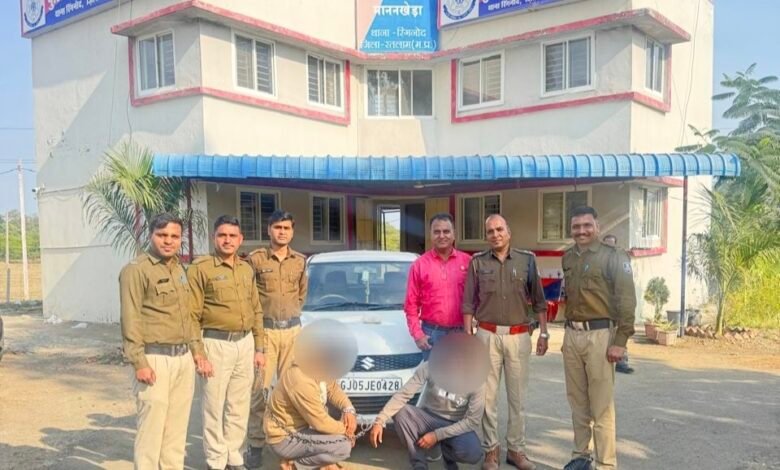 माननखेडा।  पुलिस अधीक्षक श्री अमित कुमार (भा.पु.से.) के निर्देशन में अतिरिक्त पुलिस अधीक्षक रतलाम शहर श्री राकेश खाखा, अतिरिक्त पुलिस अधीक्षक रतलाम (ग्रामीण) श्री विवेक कुमार लाल व अनुविभागीय पुलिस अधिकारी जावरा श्री संदीप मालवीय के मागर्दशन मे थाना प्रभारी रिंगनोद के नेतृत्व में चौकी प्रभारी माननखेडा उनि राजेश मालवीय के नेतृत्व में पुलिस को 16.01. 2026 को शाम में पुलिस को मुखबिर से सूचना प्राप्त हुई कि एक स्विफ्ट कार क्र GJ05JE0428 में दो व्यक्ति MD ड्रग्स लेकर आ रहे है । सूचना पर माननखेड़ा चौकी के सामने घेराबन्दी कर एनडीपीएस एक्ट के प्रावधानो का पालन करते हुए प्रभावी कार्यवाही कर कार में सवार दो आरोपी- 01. इफतार पिता ईकबाल खान जाति मेवाती मुसलमान उम्र 25 साल निवासी ग्राम दाउदखेडी थाना YD नगर मन्दसौर, 02. वसीम पिता युसूफ खान जाति मीर पठान उम्र 25 साल निवासी ग्राम दाउद खेडी थाना YD नगर मन्दसौर के कब्जे से 200 ग्राम MD ड्रग्स जप्त कर आरोपियो को गिरफ्तार किया गिरफ्तारशुदा आरोपीगणो से जप्तशुदा MD ड्रग्स के संबंध मे पुछताछ की जा रही है ।