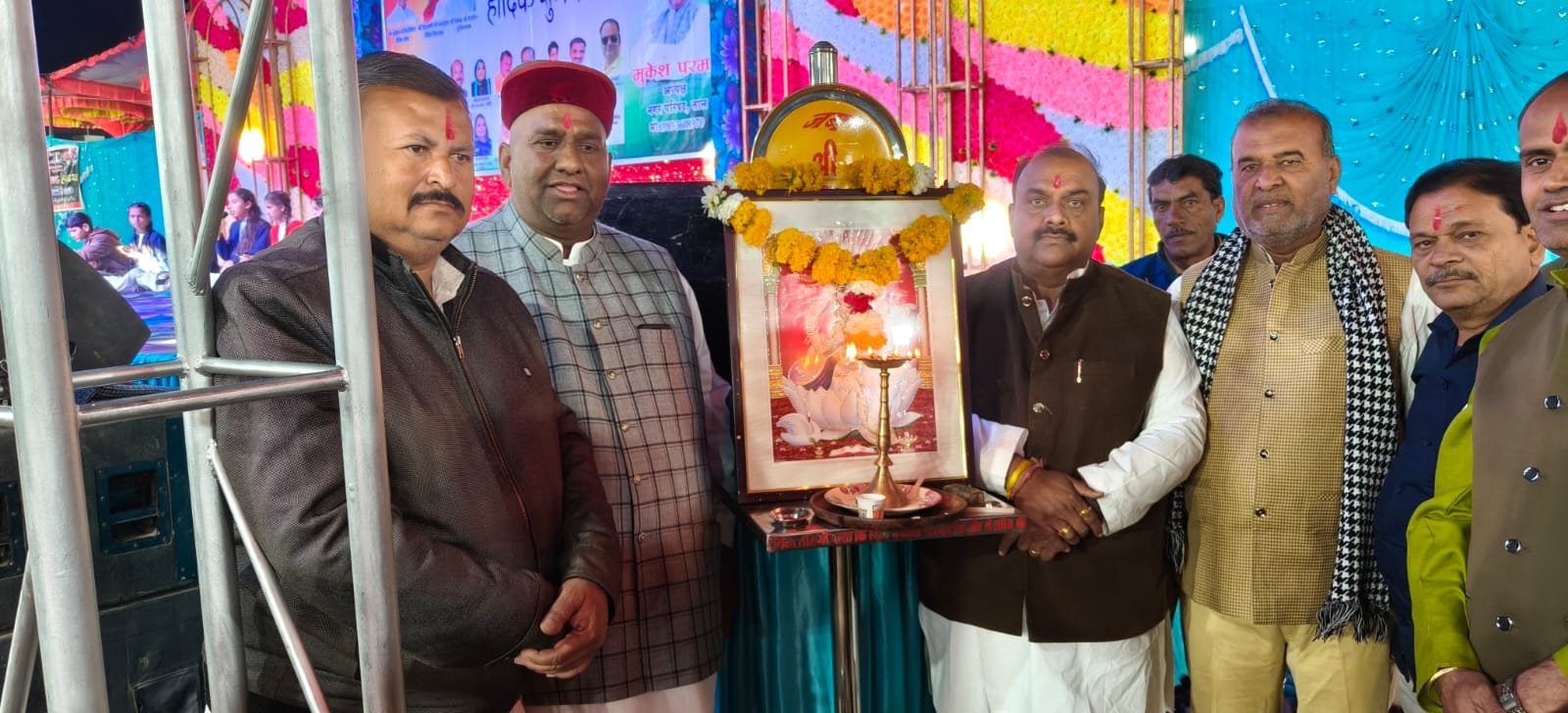 कार्यक्रम के मुख्य अतिथि जिला पंचायत के पूर्व उपाध्यक्ष एवं नगर पंचायत ताल के पूर्व अध्यक्ष राजेश कुमार परमार एवं विशेष अतिथि के रूप में नगर पंचायत उपाध्यक्ष प्रतिनिधि सखावत, पार्षद पवन मोदी, अनिल परमार, पंकज शुक्ला, दिनेश माली,पूर्व पार्षद गोवर्धन लाल पोरवाल ने सर्वप्रथम मां सरस्वती की पूजा अर्चना कर कार्यक्रम का शुभारंभ किया।सभी उपस्थित अतिथियों का नगर पंचायत अध्यक्ष मुकेश परमार ने पुष्प माला पहनाकर स्वागत किया।
