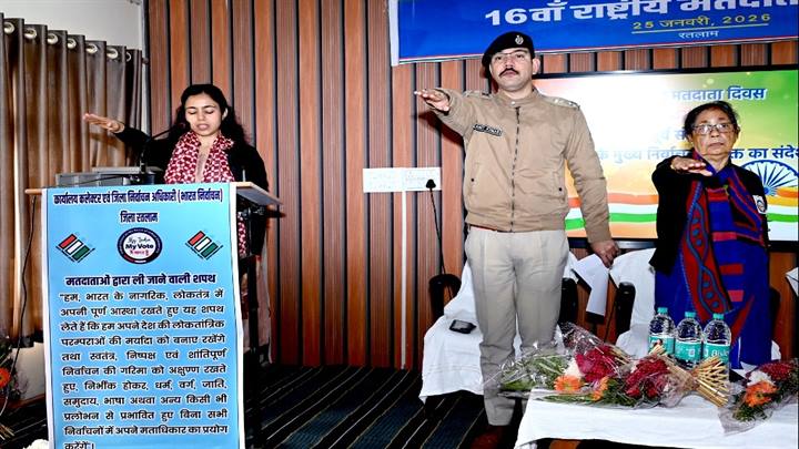 निर्वाचन आयोग द्वारा प्रतिवर्ष 25 जनवरी को राष्ट्रीय मतदाता दिवस के रूप में मनाया जाता है। निर्वाचन आयोग का ध्येय वाक्य“ वोट जैसा कुछ भी नहीं, वोट जरुर डालेंगे हम “, निर्धारित किया गया है। रतलाम जिले के आर्ट एंड साइंस कॉलेज में आज 16 वें राष्ट्रीय मतदाता दिवस का आयोजन मां सरस्वती के चित्र पर माल्यार्पण और दीप प्रज्वलन करके किया गया। कार्यक्रम की मुख्य अतिथि पद्मश्री डॉक्टर लीला जोशी ने कहा कि वोट लोकतंत्र की ताकत है, नए युवा जागरूक मतदाता बन कर देश के विकास मे अपनी भूमिका का निर्वहन करे , जागरूकता संबंधी गतिविधियों में निरंतर बनाए रखी जाना चाहिए। पूर्व की तुलना में वोट का प्रतिशत बढ़ा है, किंतु अभी और कार्य करने की आवश्यकता है, पहले की तुलना में वोटिंग करना आसान हुआ है। कलेक्टर श्रीमती मिशा सिंह ने अपने उद्बोधन में कहा कि राष्ट्रीय मतदाता दिवस ऐसा पर्व है जिसके माध्यम से देश की दशा और दिशा तय होती है। वोट के माध्यम से ही मतदाता देश की नीतियां तय करता है। सरकारी नीतियों के प्रति सहमति और असहमति व्यक्त करने का सशक्त माध्यम वोट ही है। कलेक्टर ने कहा कि मतदान संबंधी जागरूकता गतिविधियों के लिए स्कूल और कॉलेज में यंग वोटर्स क्लब बनाए गए हैं। उन्होंने एस आई आर के कार्य में भूमिका निभाने के लिए एडीएम डॉ शालिनी श्रीवास्तव सहित जिले के निर्वाचन कार्य में लगे अधिकारी/कर्मचारियों सहित बी एल ओ की मुक्त कंठ से प्रशंसा की। पुलिस अधीक्षक श्री अमित कुमार ने कहा कि मतदान अधिकार है और नागरिकों की शक्ति है, इसलिए मतदान अवश्य करना चाहिए। कार्यक्रम मे युवा मतदाता नारायण बैरागी और पार्थ गुप्ता को फॉर्म नंबर 6 अतिथियों द्वारा प्रदान किए गए। कार्यक्रम के दौरान मुख्य निर्वाचन आयुक्त श्री ज्ञानेश कुमार ने वर्चुअल माध्यम से ऑनलाइन उद्बोधन दिया जिसे सभी के द्वारा देखा और सुना गया। कार्यक्रम मे कलेक्टर एवं जिला निर्वाचन अधिकारी श्रीमती मिशा सिंह ने सभी को संकल्प कराया कि “हम, भारत के नागरिक, लोकतंत्र में अपनी पूर्ण आस्था रखते हुए यह शपथ लेते हैं कि हम अपने देश की लोकतांत्रिक परम्पराओं की मर्यादा को बनाए रखेंगे तथा स्वतंत्र, निष्पक्ष एवं शांतिपूर्ण निर्वाचन की गरिमा को अक्षुण रखते हुए, निर्भीक होकर, धर्म, वर्ग, जाति, समुदाय, भाषा अथवा अन्य किसी भी प्रलोभन से प्रभावित हुए बिना सभी निर्वाचनों में अपने मताधिकार का प्रयोग करेंगें। कार्यक्रम के दौरान एडीएम डॉक्टर शालिनी श्रीवास्तव, नगर निगम आयुक्त श्री अनिल भाना, रतलाम शहर एसडीएम आर्ची हरित, एडिशनल एसपी श्री राकेश खाखा, कॉलेज के प्राचार्य डॉ वाय के मिश्रा, तहसीलदार श्री ऋषभ ठाकुर, उपसंचालक सामाजिक न्याय श्रीमती संध्या शर्मा, स्कूल शिक्षा विभाग स
