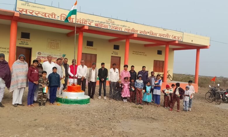 गरोठ- क्षेत्र के गांव बर्डिया अमरा मे ग्राम भारती चर्मण्वती जिला शिक्षा समिति गरोठ द्वारा संचालित सरस्वती शिशु मंदिर पर 77 वां गणतंत्र दिवस बड़े ही हर्षोल्लास के साथ मनाया गया। कार्यक्रम की शुरुआत समिति के सदस्यो द्वारा भारत माता की तस्वीर समक्ष दीप प्रज्वलित कर माल्यार्पण कर ध्वजा रोहण किया गया। कार्यक्रम मे छात्र व छात्राओं द्वारा सांस्कृतिक प्रस्तुतियां दी गई और भव्य झांकियां ने गणतंत्र दिवस को यादगार बनाया। देशभक्ति गीतों नृत्य एवं भावपूर्ण प्रस्तुतियों के माध्यम से विद्यार्थियों ने अपने प्रतिभा का प्रदर्शन कर उपस्थित अतिथियों का मन मोह लिया। कोषाध्यक्ष भेरूलाल आचार्य द्वारा कार्यक्रम मे बताया गया की यह दिन हमारे संविधान अधिकारों के साथ-साथ कर्तव्यों की भी याद दिलाता है तथा राष्ट्र निर्माण में अनुशासन और जिम्मेदारी का बोध कराता है। विद्यालय के प्रधानाचार्य आलोक पांडेय द्वारा जानकारी मे बताया की राष्ट्रीय पर्व विद्यार्थियों में देश प्रेम संस्कार अनुशासन एवं सामाजिक चेतना का विकास करते हैं सभी विद्यार्थियों को राष्ट्रहित को सर्वोपरि रखने की बात कही। इस दौरान रामदयाल पाटीदार विद्यालय संयोजक, दिनेश पाटीदार अध्यक्ष,भेरूलाल आचार्य कोषाध्यक्ष, विष्णु पाटीदार, प्रेम नारायण पाटीदार, लक्ष्मी नारायण पाटीदार,हरलाल पाटीदार, छात्र छात्राएं सहित विद्यालय स्टाफ मौजूद रहे।