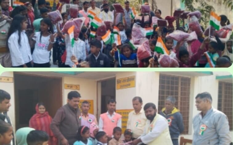 हर्षोल्लास से मनाया गया 77वां गणतंत्र दिवस सभासद ने बच्चों को बांटे स्वेटर व मिठाइयां