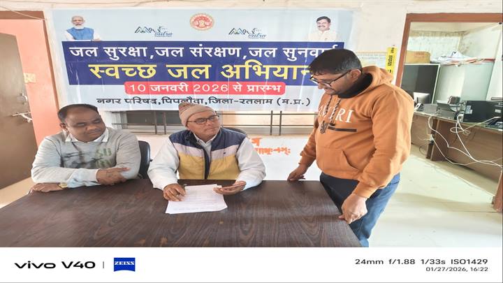 कलेक्टर श्रीमती मिशा सिंह के निर्देशानुसार पी ओ डूडा श्री अरुण पाठक के मार्गदर्शन में रतलाम जिले में “स्वच्छ जल“ अभियान का प्रभावी क्रियान्वयन किया जा रहा है। अभियान अंतर्गत मंगलवार को जिले के सभी 9 नगरीय निकायो में ’जल सुनवाई’ आयोजित की गई । जल सुनवाई में कुल 22 शिकायतें प्राप्त हुई जिसमें से 20 शिकायतों का मौके पर ही निराकरण किया गया एवं 2 शिकायतो पर कार्यवाही की जा रही है।