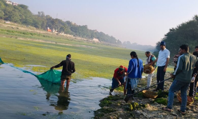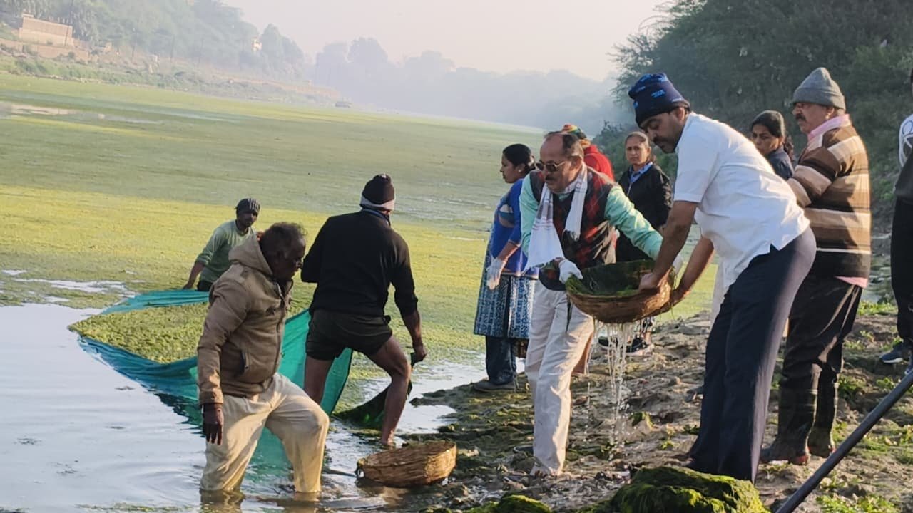 मंदसौर । शिवना शुद्धिकरण अभियान के 84वें दिन के श्रमदान में विशेष रूप से शिवना नदी में जमी भारी मात्रा में काई को हटाया गया । लंबे समय से नदी में जमी काई और गंदगी के कारण साफ पानी और नदी की सुंदरता प्रभावित हो रही हे । जिसको देख कर श्रमदानियों द्वारा नदी में उतरकर पूरी लगन और मेहनत के साथ काई को बाहर निकाला । इसके साथ ही नदी के आसपास फैले प्लास्टिक और अन्य कचरे को भी एकत्र कर, घाटों की सफाई की गई ।