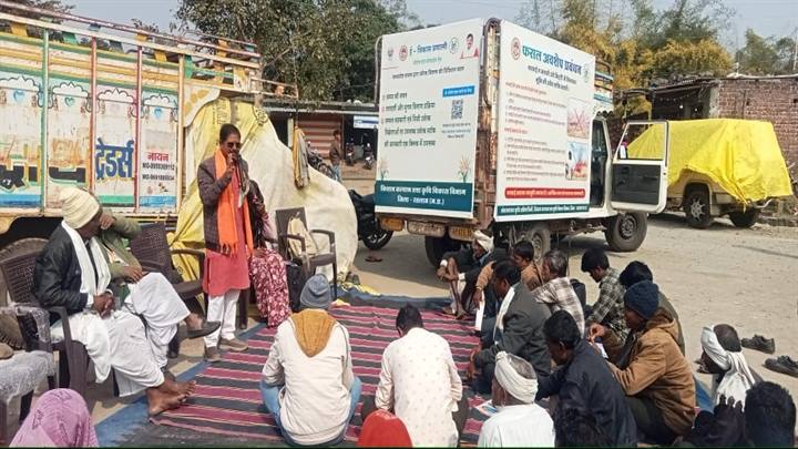 कृषि रथ द्वारा भ्रमण कर, ग्राम पंचायतों में किसानों को कृषि की उन्नत तकनीकों की जानकारी दी गई