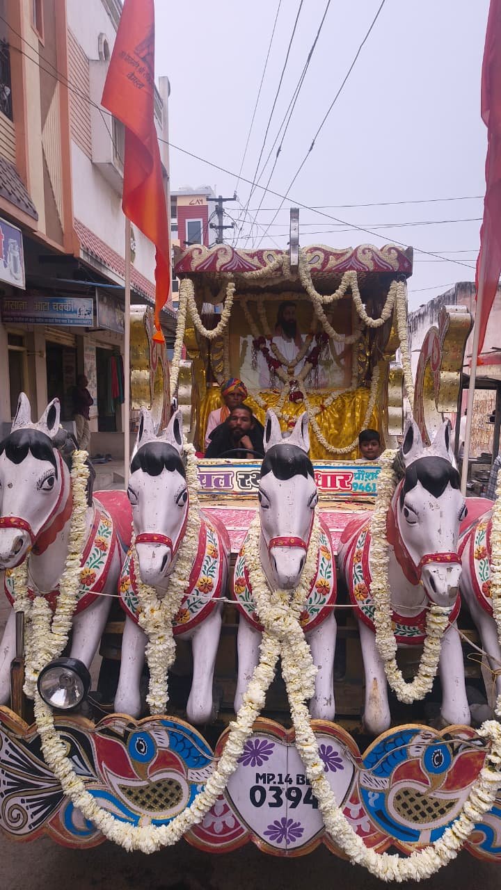 संत शिरोमणि गुरु रविदास महाराज के जन्मोत्सव के अवसर पर रविवार को नगर में श्री रविदास मंडल के तत्वाधान में भव्य चल समारोह एवं कलश यात्रा का आयोजन किया गया। कार्यक्रम में बड़ी संख्या में समाजजन एवं श्रद्धालु शामिल हुए।
