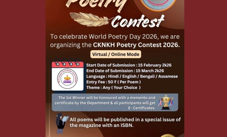सीकेएनकेएच फाउंडेशन के पुस्तक विभाग की नवनियुक्त निदेशिका डॉ. ऋषिका वर्मा ने हाल ही में “सीकेएनकेएच कविता प्रतियोगिता 2026” की आधिकारिक घोषणा की है।