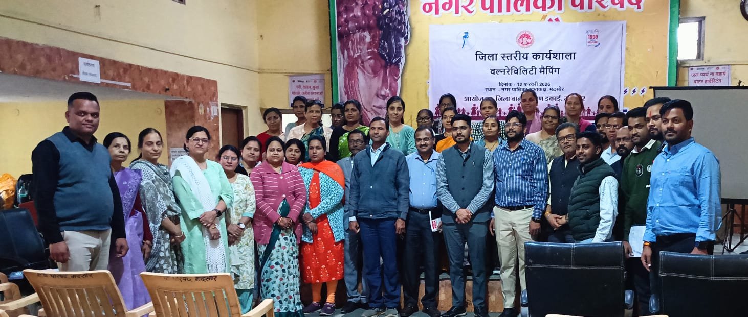 मंदसौर 13 फरवरी 26 / जिला कार्यक्रम अधिकारी महिला बाल विकास विभाग श्री बी. एल. विश्नोई द्वारा बताया गया कि मिशन वात्सल्य योजना अंतर्गत किशोर न्याय (बालकों की देखरेख और संरक्षण) अधिनियम 2015 (संशोधन 2021) के प्रावधानों के तहत् बच्चों की देखरेख एवं संरक्षण के सकारात्मक उपाय के सिद्धांत के अनुसार परिवार और समुदाय में सभी संसाधनों को जुटाकर बच्चों की भलाई को बढ़ावा देने एवं कमजोर बच्चों की पहचान को सुगम बनाया जा कर एक समावेशी और सक्षम वातावरण तैयार किये जाने हेतु प्रदेश में वल्नरेबिलिटी मैपिंग किये जाने के निर्देश के पालन में प्रथम चरण में नगरपालिका सभा कक्ष में जिला बाल संरक्षण इकाई, मंदसौर द्वारा कार्यशाला का आयोजन किया गया। जिसमें सभी 9 परियोजना के सभी पर्यवेक्षक एवं ब्लॉक कॉर्डिनेटरो ने भाग लिया।