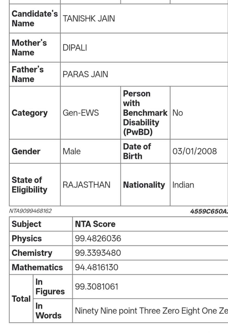 निराशा के बावजूद उसने हार नहीं मानी। एक वर्ष तक और अधिक अनुशासन के साथ तैयारी की और सोमवार को घोषित परिणाम में 99.30 पर्सेंटाइल हासिल कर अपनी मेहनत को नई ऊंचाई दे दी।