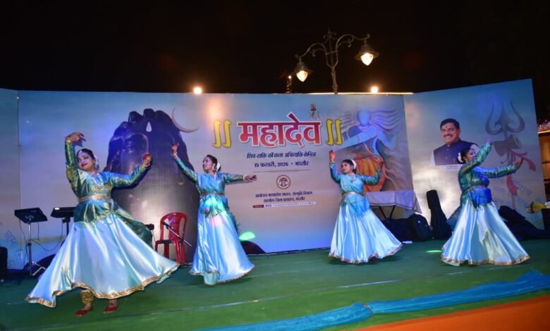 मंदसौर 15 फरवरी 26 / संस्कृति विभाग, म.प्र. शासन एवं जिला प्रशासन द्वारा मंदसौर के पशुपतिनाथ लोक परिसर में स्थित एमपीथियेटर में शिव-शिक्त की कला अभिव्यक्तियों पर एकाग्र “महादेव महोत्सव” का आयोजन 15 फरवरी को किया गया। समारोह में लोक गायन, शिव केंद्रित नृत्य नाटिका एवं भक्ति गायन की प्रस्तुतियाँ संयोजित की गईं। यह आयोजन जिला प्रशासन, मंदसौर के सहयोग से आयोजित किया गया। कार्यक्रम के दौरान सांसद श्री बंशीलाल गुर्जर, जिला पंचायत अध्यक्ष श्रीमती दुर्गा विजय पाटीदार, नगर पालिका अध्यक्ष श्रीमती रमादेवी बंशीलाल गुर्जर सहित अन्य जनप्रतिनिधि प्रशासनिक अधिकारियों में अपर कलेक्टर श्रीमती एकता जायसवाल, मंदसौर एसडीएम श्री शिवलाल शाक्य, बड़ी संख्या में श्रोतागण और दर्शक, पत्रकार मौजूद थे।महोत्सव की संध्या लोक-सुरों की मधुर अनुगूंज से आलोकित हुई। इंदौर के लोकगायक श्री मुकेश चौहान ने अपने साथी कलाकारों के साथ मंच संभाला और भक्ति-रस की गंगा प्रवाहित कर दी। उन्होंने गुरुज्ञान की भांग पिलाई अंखियों में सुरती छाई… भावपूर्ण भजन से अपनी मनोहारी प्रस्तुति का श्रीगणेश किया। उनके कंठध्वनि में ऐसी आत्मीयता और आस्था थी मानो स्वयं शिवत्व का स्पर्श श्रोताओं के अंतर्मन को आलोकित कर रहा हो। इसके पश्चात पीले अमीरस धारा गगन में झड़ी लगी… भजन गाकर शिव की महिमा का गुणगान किया। स्वर और ताल के संगम ने ऐसा आध्यात्मिक आलोक रचा कि श्रोता भाव-विभोर हो उठे।