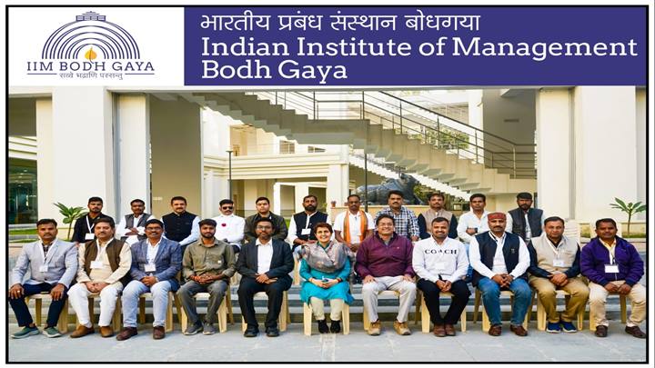 भारतीय प्रबंधन संस्थान बोधगया में आयोजित नेतृत्व विकास कार्यक्रम सफलतापूर्वक संपन्न हुआ। यह कार्यक्रम संस्थान की निदेशक प्रो. डॉ. विनीता एस. सहाय के नेतृत्व में आयोजित किया गया। कार्यक्रम के सफल संचालन में समन्वयक डॉ. अजीत टॉम जेम्स एवं डॉ. बिजॉय फिलिप वी. जी. का विशेष मार्गदर्शन प्राप्त हुआ।