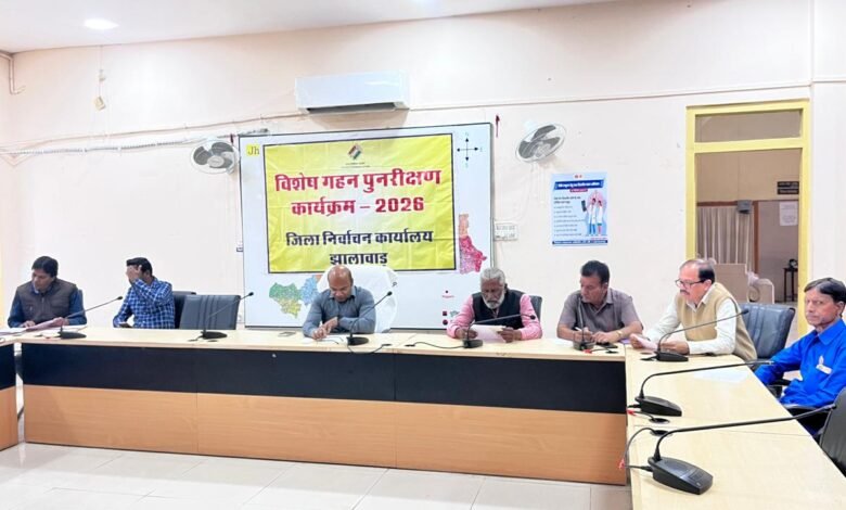 झालावाड़ | भारत निर्वाचन आयोग के विशेष गहन पुनरीक्षण कार्यक्रम-2026 के तहत शनिवार को मिनी सचिवालय सभागार में उप जिला निर्वाचन अधिकारी (अतिरिक्त कलेक्टर) अनुराग भार्गव की अध्यक्षता में मान्यता प्राप्त राजनैतिक दलों के प्रतिनिधियों की बैठक आयोजित हुई। बैठक में निर्वाचक नामावली के प्रारूप व अंतिम प्रकाशन तथा दावे-आपत्तियों के निस्तारण की विस्तृत जानकारी दी गई।