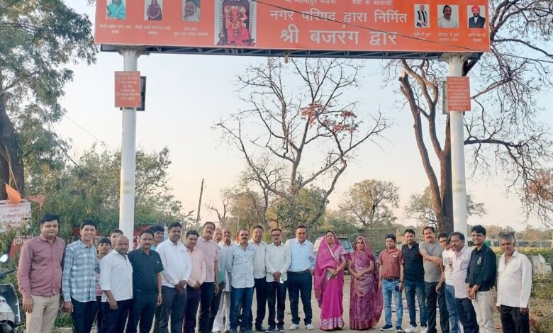 शामगढ़। नगर में प्रसिद्ध पुरातन वेडी के मार बालाजी धाम के स्वागत द्वार श्री बजरंग द्वार का लोकार्पण नपा अध्यक्ष कविता नरेंद्र यादव उपाध्यक्ष डाली बाई जोशी सीएमओ सुरेश कुमार यादव एवं अन्य जनप्रतिनिधियों के द्वारा वैदिक मंत्रोच्चार के साथ लोकार्पण किया गया।