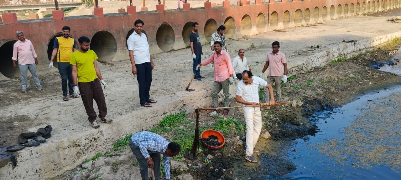 रविवार को शुद्धिकरण अभियान में नदी से 1 ट्राली कचरा निकाला गया