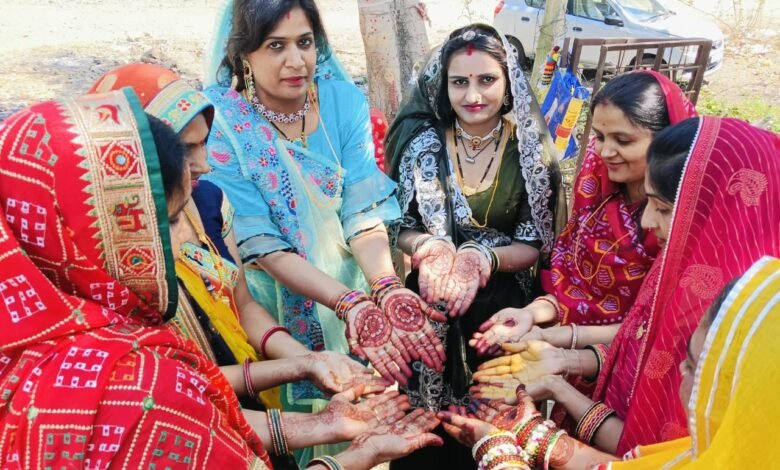 सुवासरा पेट्रोल पंप चौराहा पर मातृ शक्तियों ने सोलह श्रृंगार कर पीपल कि पुजा तथा घरों पर हाथों से ठप्पे लगाए