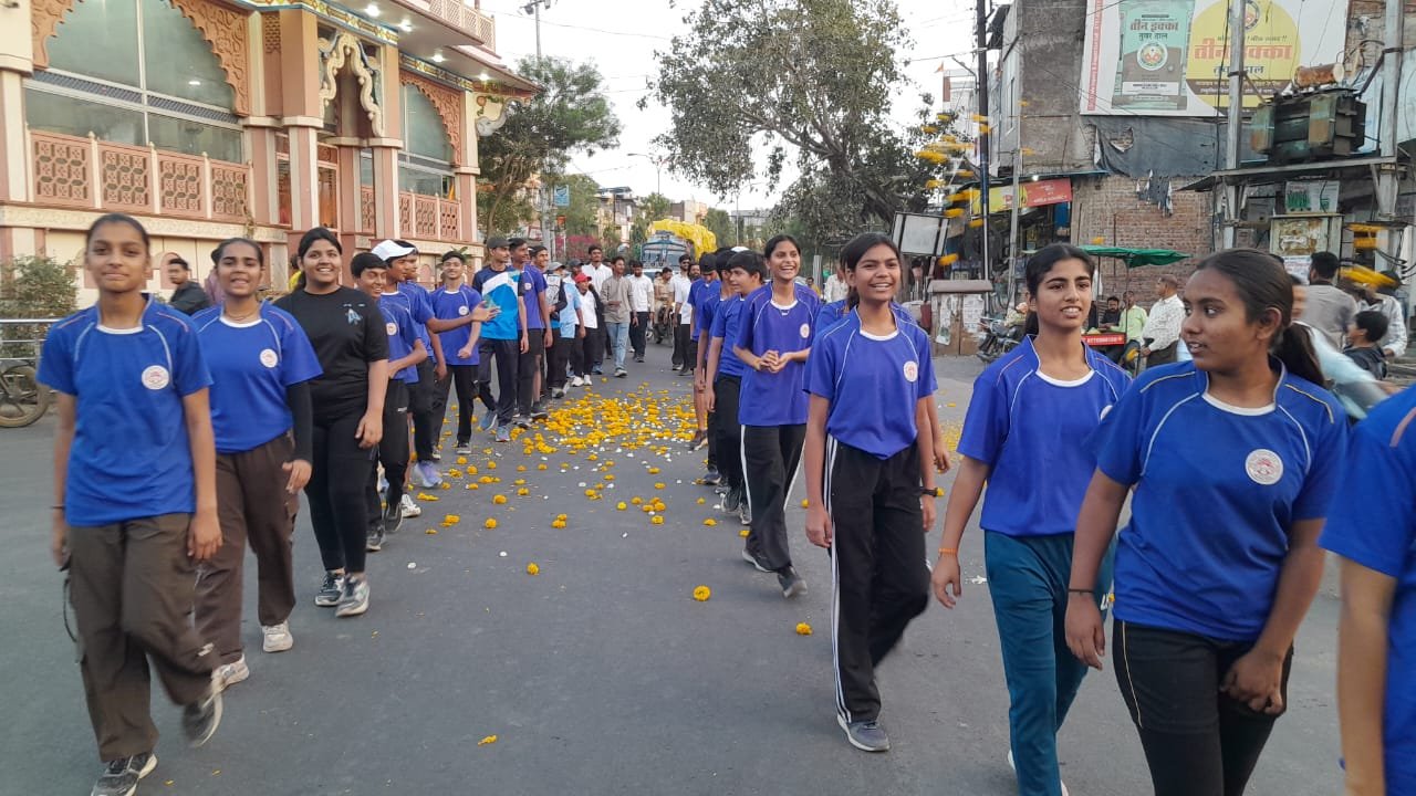 इसी कड़ी में आज. दि. 15 मार्च 2026. रविवार शाम को 4:30 शामगढ़ नाका (अध्यक्ष निवास) से सम्मानित अतिथियो के साथ एक विशाल मशाल यात्रा प्रारंभ हुई.. मशाल यात्रा नगर के मुख्य मार्ग से होते हुए मिडिल ग्राउंड तक पहुंची।