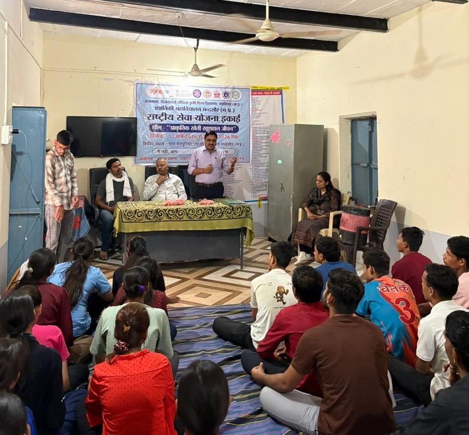 मन्दसौर। उद्यानिकी महाविद्यालय, मंदसौर के अंतर्गत एनएसएस इकाई का सात दिवसीय विशेष शिविर का सफलतापूर्वक शुभारंभ आज दिनांक 17 मार्च को ग्राम मोहम्मदपूरा (मैनपुरिया) के पंचायत भवन में प्रारम्भ किया गया जो 23 मार्च तक आयोजित किया जाएगा। इस शिविर की थीम ‘प्राकृतिक खेती खुशहाल जीवन’ है। राष्ट्रीय सेवा योजना के इस शिविर का मुख्य उद्देश्य लोगों में स्वच्छता के महत्व के प्रति जागरूकता फैलाना तथा समुदाय में स्वस्थ जीवनशैली को बढ़ावा देना था।शिविर के दौरान एनएसएस स्वयंसेवकों ने व्यक्तिगत स्वच्छता के महत्व पर प्रकाश डाला। डॉ. जी.पी.एस. राठौर एवं डॉ. एच पी सिंह को मुख्य अतिथि के रूप में आमंत्रित किया गया, डॉ. जी.पी.एस. राठौर ने व्यक्तिगत और सार्वजनिक स्वच्छता पर अपना व्याख्यान दिया। उन्होंने लोगों को नियमित हाथ धोने, साफ कपड़े पहनने, सुरक्षित पानी पीने तथा दैनिक जीवन में स्वच्छता बनाए रखने के बारे में जागरूक किया। बच्चों और युवाओं पर विशेष ध्यान दिया गया ताकि वे प्रारंभ से ही स्वस्थ आदतें अपनाएं।