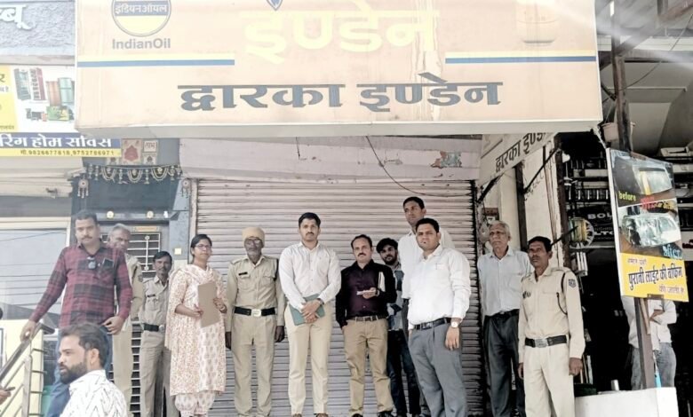 दोगुनी कीमत पर गैस सिलेंडर ब्लैक में देने पर पर द्वारका इण्डेन गैस एजेंसी सील
