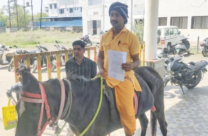 घोड़ी पर सावर होकर पहुंचा जनसुनवाई के लिए रतलाम कलेक्टर कार्यालय, पशु-पक्षियों के लिए उठाई आवाज