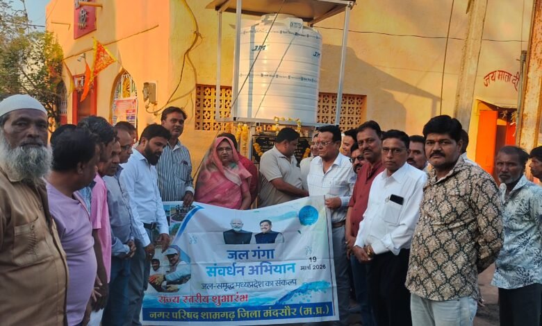 श्यामगढ़- नगर में वार्ड नंबर 15 स्थित गांधीनगर में हर राहगीर को ठंडा शीतल जल पीने को मिले इसी को लेकर स्वर्गीय गोपी रमन जी यादव एवं स्वर्गीय श्रीमती शांति देवी यादव की स्मृति में उनके पौत्र अंकित यादव के सौजन्य से भारत विकास परिषद की नवीन स्थाई प्रकल्प (वाटर कूलर) जल मंदिर का लोकार्पण हनुमान जन्म महोत्सव के शुभ अवसर पर 2 अप्रैल को शाम 5:30 बजे संतोषी माता मंदिर चौराहा गांधीनगर में नगर परिषद अध्यक्ष कविता नरेन्द्र यादव, भारत विकास परिषद के अध्यक्ष डॉ अजय चौहान, सचिव नवीन सेठिया, महासचिव विनोद काला की मौजूदगी में लोकार्पण किया गया साथ ही नगर परिषद के विनर तले जल गंगा संवर्धन अभियान जल समृद्ध का मध्य प्रदेश संकल्प राज्य स्तरीय का शुभारंभ किया गया इस मौके पर नगर परिषद के सभापति पार्षदगण एवं कई वरिष्ठ जन मौजूद रहे ।