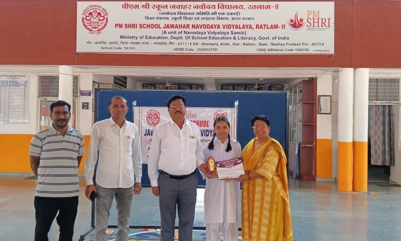 पीएम श्री जवाहर नवोदय विद्यालय आलोट का परीक्षा परिणाम 100 प्रतिशत: दुर्विका झवर विद्यालय टॉपर रही