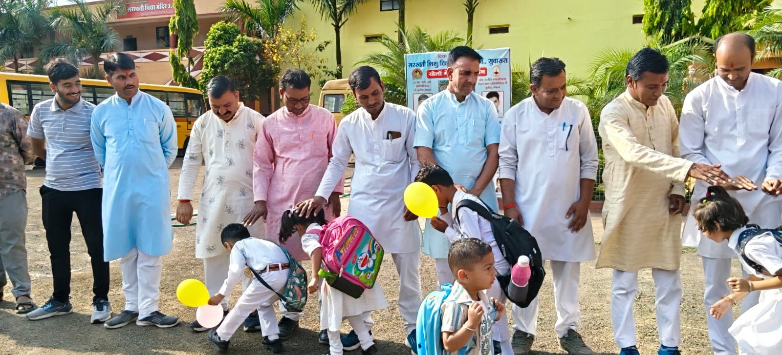 नवीन सत्र के प्रथम दिवस 1 अप्रैल, बुधवार को विद्यालय परिसर में आचार्य परिवार द्वारा सभी भाईयौ-बहनों का चंदन तिलक लगाकर आत्मीय स्वागत किया गया। इसके पश्चात विद्यार्थियों ने भारत माता को पुष्प अर्पित कर आशीर्वाद प्राप्त किया।
