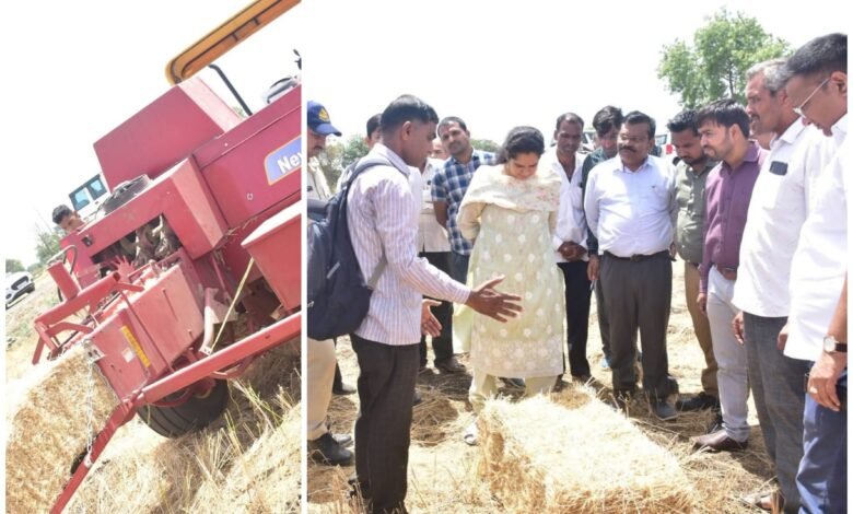 ग्राम गुलियाना में बेलर से अलसी डंठल संग्रहण प्रक्रिया का कलेक्टर ने किया निरीक्षण