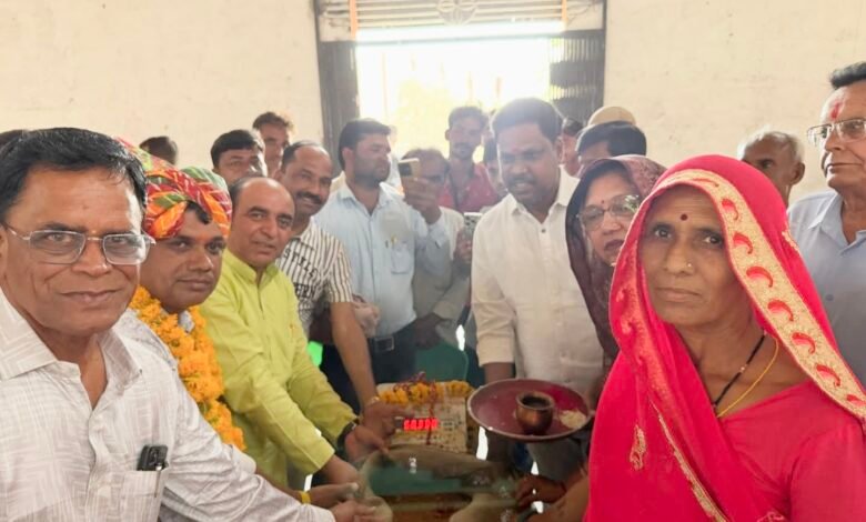 गेहूं उपार्जन केंद्र पोरवाल वेयर हाउस शामगढ़ पर अन्नदाता किसानों का साफा बांधकर किया स्वागत