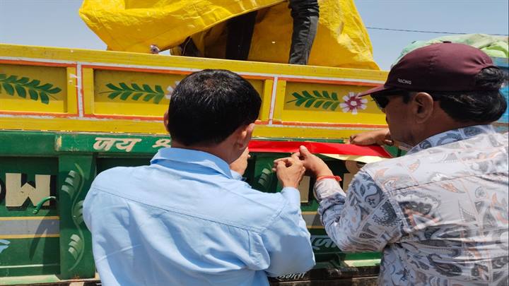 कृषि उपज मंडी में सड़क सुरक्षा अभियान, ट्रैक्टर-ट्रॉलियों पर लगाए गए रेडियम स्टिकर