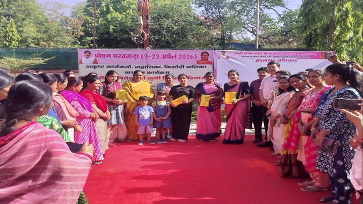 शासन द्वारा 10 अप्रैल से 25 अप्रैल तक नारी शक्ति वंदन पखवाड़ा मनाया जा रहा है। नारी शक्ति वंदन पखवाड़ा अंतर्गत नारी शक्ति वंदन के हस्ताक्षर अभियान का शुभारंभ रतलाम जिले में महिला एवं बाल विकास मंत्री एवं कैबिनेट मंत्री मध्य प्रदेश शासन सुश्री निर्मला भूरिया द्वारा किया गया। इस अवसर पर उन्होंने कक्षा 10 वी की मेरिट सूची में स्थान प्राप्त करने वाली बालिका एवं 12वी की मेरिट सूची में स्थान प्राप्त करने वाली बालिका और 8 वे राष्ट्रीय पोषण पखवाड़ा में उत्कृष्ट कार्य कर रही आंगनबाड़ी कार्यकर्ता श्रीमती भाग्यवती सेन (परि. रतलाम ग्रामीण-02), श्रीमती पिंकी परमार (परि. रतलाम ग्रामीण-01) और आंगनवाड़ी सहायिका लीला पाण्डे (परि. रतलाम शहर-02) को सुश्री भूरिया ने सम्मानित किया। कार्यक्रम मे संयुक्त संचालक और ओएसडी डॉ. विशाल नाडकर्णी, जिला कार्यक्रम अधिकारी श्री रामनिवास बुधौलिया, परियोजना अधिकारी श्रीमती चेतना गेहलोद, श्रीमती अर्चना माहौर, प्रभारी परियोजना अधिकारी श्रीमती प्रिंयका बैरागी, पर्यवेक्षक फिरदौस खान एवं आंगनवाडी कार्यकर्ता उपस्थित थी।
