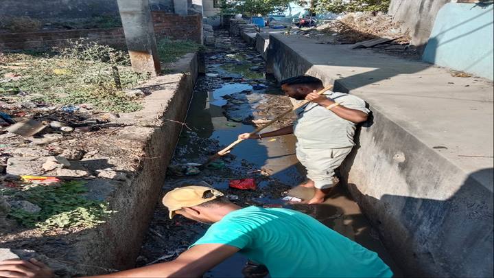 जल गंगा संवर्धन अभियान अंतर्गत नगर पालिका परिषद रतलाम द्वारा वार्ड क्रमांक 44 स्थित अमृत सागर तालाब के नाले की सफाई एक दिन एक नाला अभियान के तहत की गई।