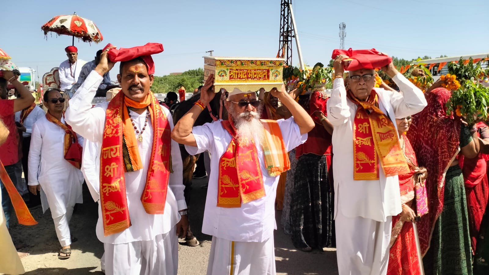 भव्य पोथी यात्रा के साथ पालीवाल समाज द्वारा आयोजित मां रुक्मणी महल पाली धाम में श्रीमद् भागवत कथा हुई प्रारंभ