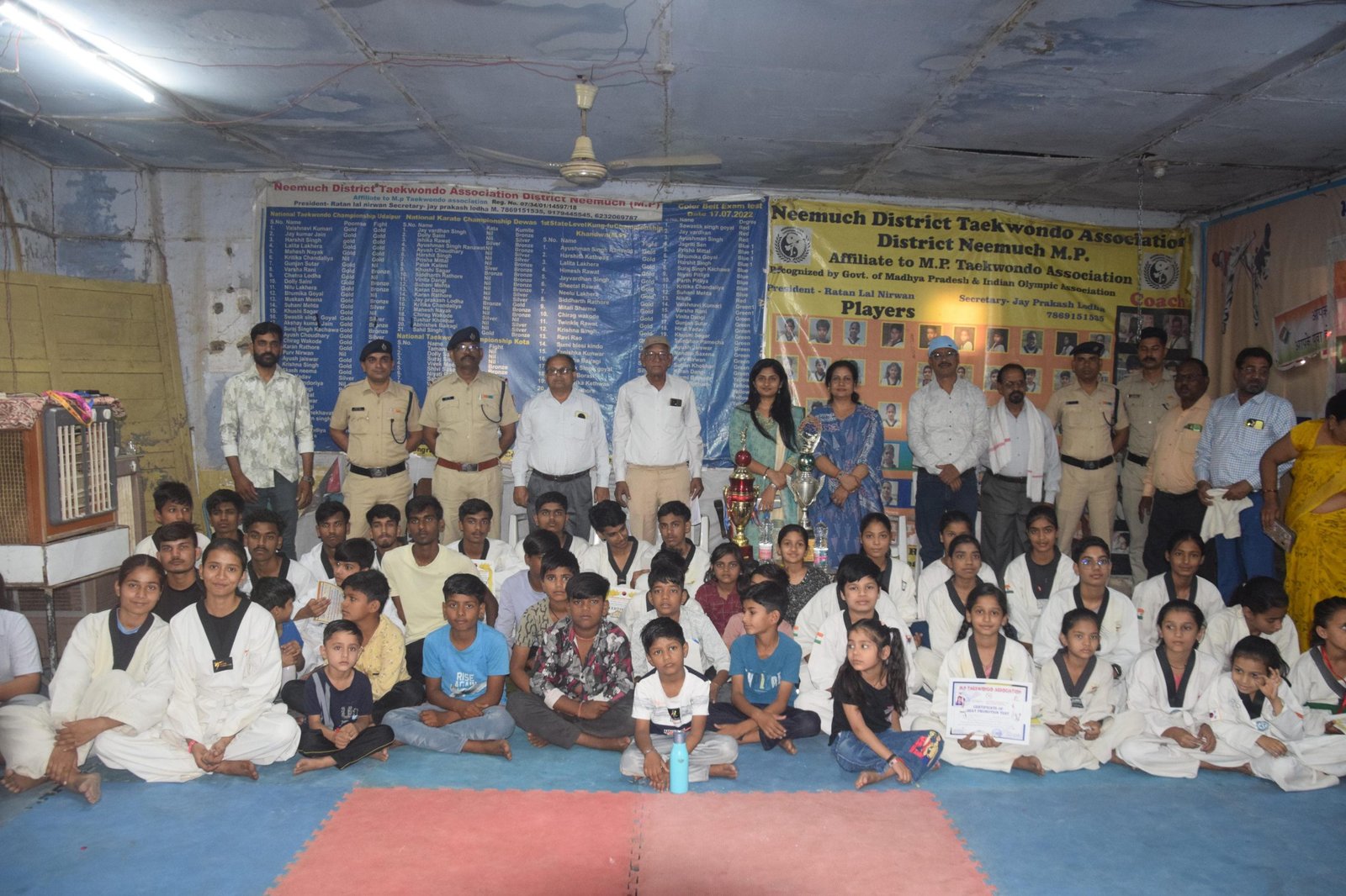 इस अवसर पर अजाक्स अध्यक्ष यशवंत गोयल, वाल्मिकी समाज के अध्यक्ष रामुराम डागर, रेलवे अनु जाति जनजाति रेल कर्मचारी शाखा नीमच के अध्यक्ष अर्जुन सिंह वर्मा, पूर्व नीमच शाखा के अध्यक्ष प्रेमचंद कलोसिया, विजयश्री जैन मेडम एवं काफी संख्या में बच्चो के अभिभावक उपस्थित रहे। कार्यक्रम का संचालन जयप्रकाश लोधा ने किया आभार श्री ए,सी वर्मा ने माना। उक्त जानकारी नीमच जिला ताइक्वांडो संघ के सचिव जय प्रकाश लोधा ने दी।