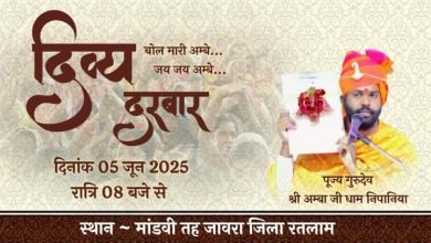 रिपोर्टर जितेंद्र सिह चंद्रावत जडवासा पूज्य गुरुदेव श्री अंबाजी धाम निपानिया द्वारा 05 जून से दिव्य दरबार लगाया जाएगा ढोढर।…