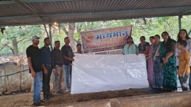 भव्य भानु वेलफेयर एनजीओ नें बारिश के चलते गौशाला में भेंट किये त्रिपाल