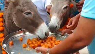 मंदसौर में अच्छी बारिश होने पर गधों को खिलाया गुलाब जामुन