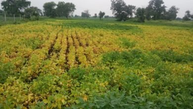 वर्षा की खेंच से खराब हुई फसल,सोयाबीन की फसल में पीला मोजक रोग से ग्रस्त