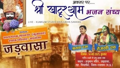 रिपोर्टर जितेंद्र सिह चंद्रावत जडवासा जडवासा मे शाम 7 बजे से खाटू श्याम भजन संध्या का आयोजन ढोढर। पिपलोदा तहसील…