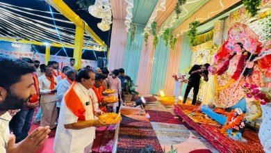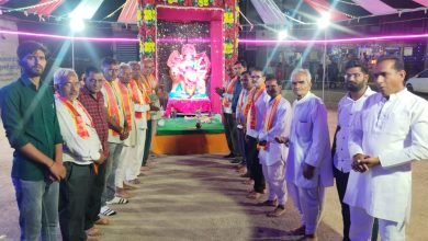 देवरा चौक गरबा पांडाल में प्रेस क्लब के पदाधिकारी ने की मां अंबे महा आरती