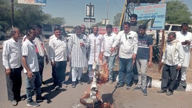 भाटखेड़ा चौराहे पर ब्लॉक कांग्रेस ने फुका मंत्री प्रहलाद पटेल के नाम का पुतला,किया विरोध प्रदर्शन