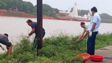59 वें दिन शिवना शुद्धिकरण अभियान: विधायक विपिन जैन के नेतृत्व में सफाई अभियान 1 ट्राली गाजर घांस व कचरा निकाला